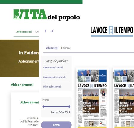 Sono on line da oggi i nuovi servizi E-commerce per i settimanali diocesani La Vita del Popolo di Treviso e Voce e Tempo di Torino.